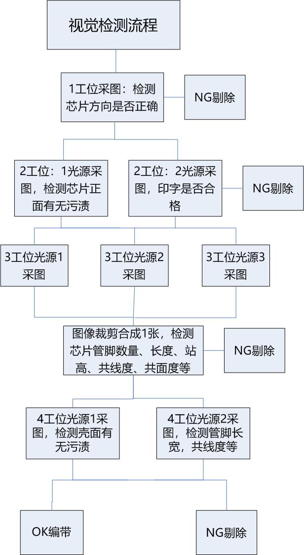 本系統(tǒng)采用四個相機,分為四個工位對半導(dǎo)體芯片進行檢測,分別是: