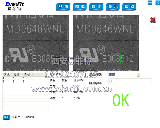 7.將檢測到的字符轉換成字符型存入EXCLE檔中,方便數據處理和打印;系統檢測到質量問題時,提供警示、剔除或其它控制信號;并可對NG圖像進行保存方便查看。