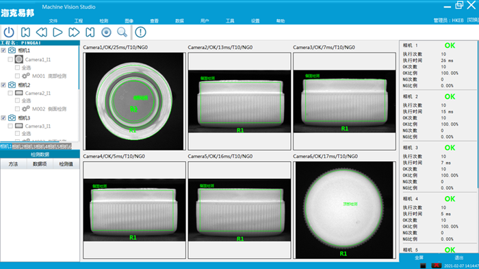 瓶蓋視覺檢測系統系列產品采用1-6個相機,根據不同產品需求,可以從瓶蓋上,下,四個側面全方位檢測瓶蓋是否存在黑點,油污、毛刺,披風,口部橢圓,注塑缺料等不良,結合用戶操作習慣,專項定制的一款成熟穩定的產品。