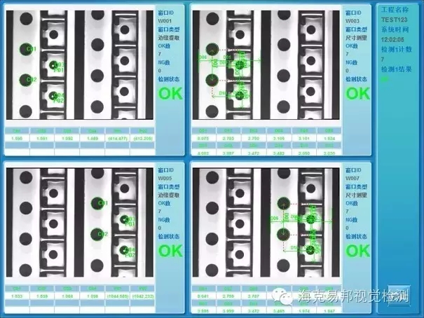 載帶缺陷檢測系統(tǒng),系統(tǒng)采用進(jìn)口工業(yè)相機(jī)快速獲取產(chǎn)品圖像,在一路相機(jī)下,實(shí)現(xiàn)兩路載帶各自定位、各自檢測。通過圖像識別、分析和計(jì)算,計(jì)算相應(yīng)位置尺寸,檢測到不良產(chǎn)品時按檢測時間命名保存不良圖像,并在顯示屏顯示當(dāng)前NG圖像,報(bào)警燈閃爍蜂鳴器輸出聲音信號。直到人工恢復(fù)報(bào)警,期間檢測不受影響。